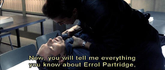 I'm gonna ask you one more time. Errol Partridge -- What do you know about him? [Librarian] I'm sure this must be some mis -- [Preston] You're an offender. [Preston] No? Then why are you so scared of me? Now, you will tell me everything you know about Errol Partridge, or I will have a wagon come to take you to the Hall of Destruction for summary combustion.