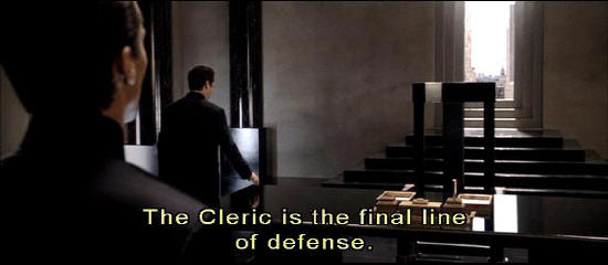 [Dupont] Attempting? How is it that you intend to expose this traitor if all you do is attempt? [Preston] You're ... absolutely ... 100% right, sir. Of course I am. [Dupont] The Cleric is the final line of defense.