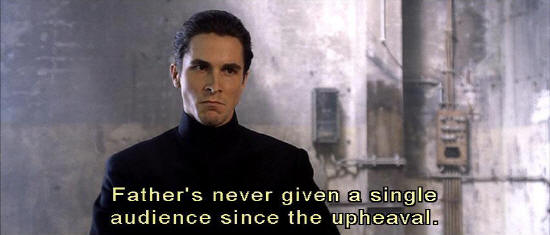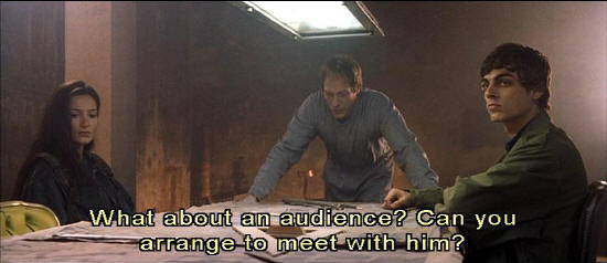 [Preston] 50 sweepers, maybe more. [Jurgen] What about an audience? Can you somehow arrange to meet with him? [Preston] Father's never given a single audience since the upheaval. The danger of assassination is too great. [Jurgen] They trained you your whole life to fight these kind of odds, Preston. [Preston] Even if I could ... even if I could make it through,