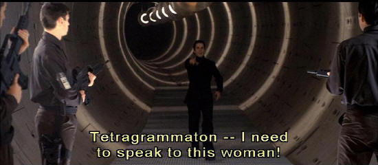 Woman: Machine turbines priming. Machine turbines priming. [PReston] Tetragrammaton -- I need to speak to this woman! [Tetragrammaton] You're too late, sir. The time lock is engaged. |