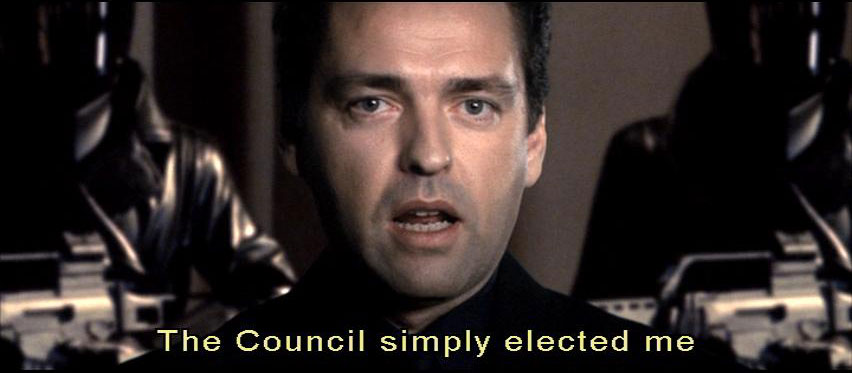[Dupont] Don't look so surprised, Preston. Why should Father be more real than any other political puppet? The real Father died years ago. The Council simply elected me to pursue his paternal tradition. And you, Preston,