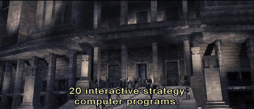 20 interactive strategy computer programs. Man: Seven works of two-dimensional ... [voice fades] [bell chiming] [Dupont] Thank you for coming, Cleric. I assume you know who I am. [Preston] Yes, sir, of course.