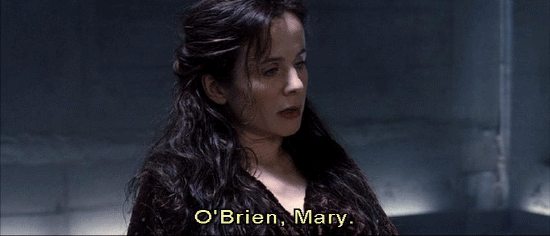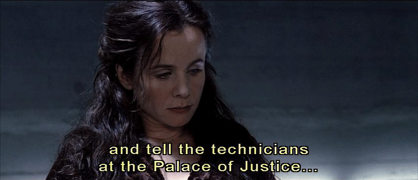 [Mary] O'Brien, Mary. [Preston] Well, Mary ... you can either wait and tell the technicians at the Palace of Justice ... or you can tell me now. Who are your friends? [Mary] I'm wondering if you have any idea at all
