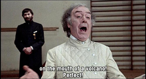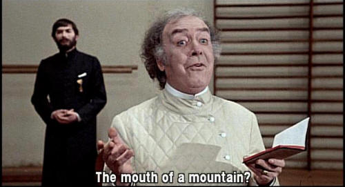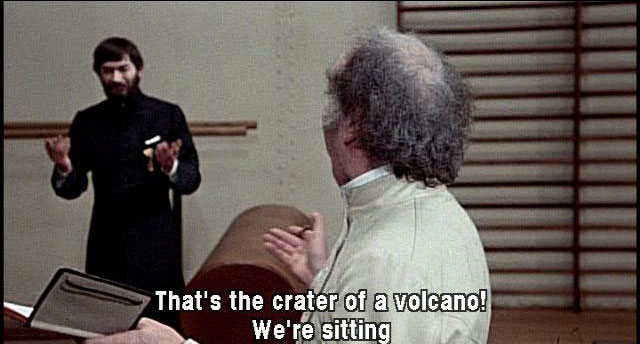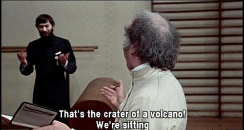 [Orlando] The mouth of a mountain? That's the crater of a volcano! We're sitting on the mouth of a volcano! Perfect! Now I got it! It's a tragedy. Thank you.