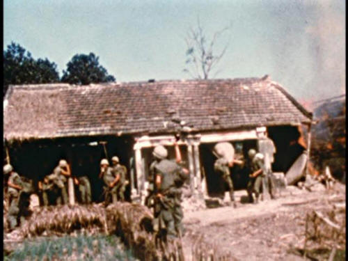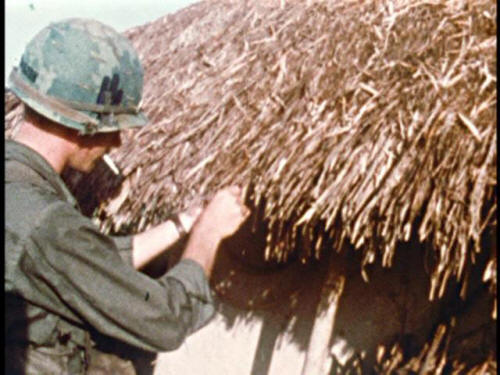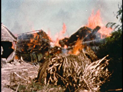 We don't know what happened to them. That was the only village in the immediate vicinity, so we cleared the area more or less. Everything is set on fire. My squad leader personally ignited the first two hootches ... and then just told us to take care of the rest. When we went out, I'd say 50% at least of the villages we passed through would be burned to the ground. There was no difference between some that we burned and the ones we didn't burn. It's just that some we had time and we'd burn them. We were given orders whenever we moved into a village to reconnoiter by fire. |