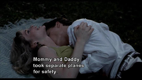 Oh, Cry-Baby, your fingers feel so good. WADE: I've been saving it up for a girl like you, honey. ALLISON: Mommy and Daddy took separate planes for safety. In case one plane crashed, I would still have a living parent. but, Cry-Baby, both planes crashed and I never saw my parents alive again. [thunder cracking] |