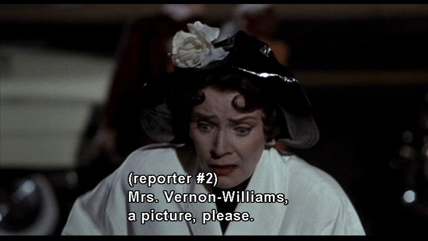 REPORTER 1: How do you feel about your granddaughter becoming a Drapette? REPORTER 2: Mrs. Vernon-Williams, a picture, please. MRS. VERNON WILLIAMS: Please, no pictures. [people chattering] |