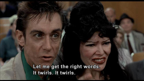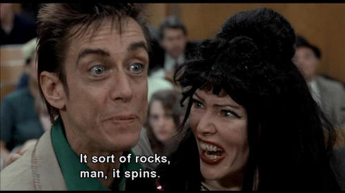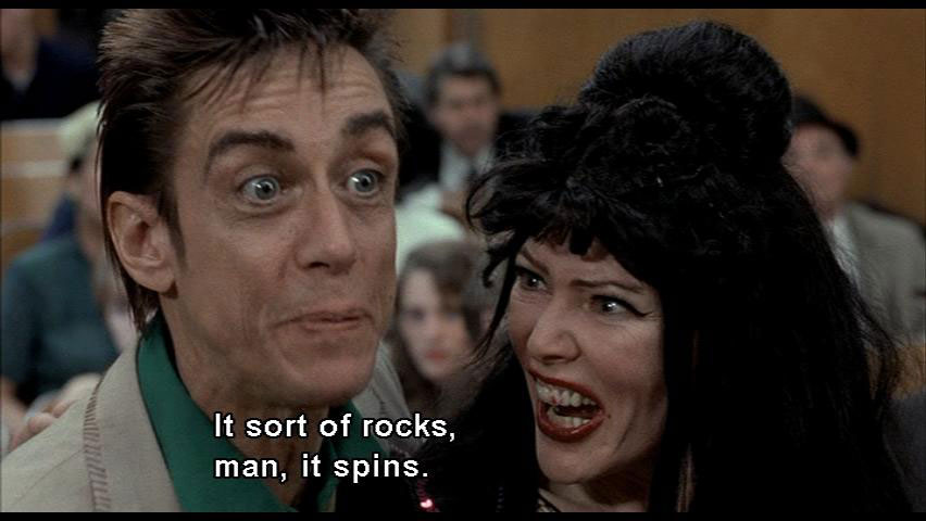 BELVEDERE: We don't know what to call it. It sort of rocks, man, it spins. Yeah. Let me get the right words. It twirls. It twirls. JUDGE: Ramona and Belvedere Rickettes, I find you guilty of disturbing the peace |