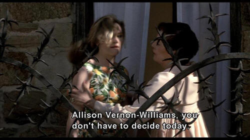 The lady has started a riot Disturbing the suburban routine MRS. VERNON WILLIAMS: Allison Vernon-Williams, you don't have to decide today. Give your heart some time to think. |