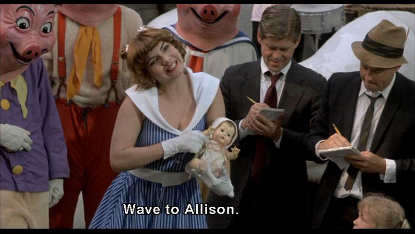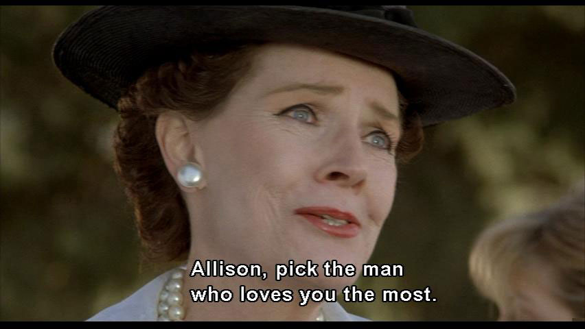LENORA: I had my baby. Isn't he cute? I'm a Square now. Wave to Allison. MRS. VERNON WILLIAMS: You may be a Square, Lenora, but you're still a tramp. ALL: Oh. MRS. VERNON WILLIAMS: Allison, pick the man who loves you the most. |