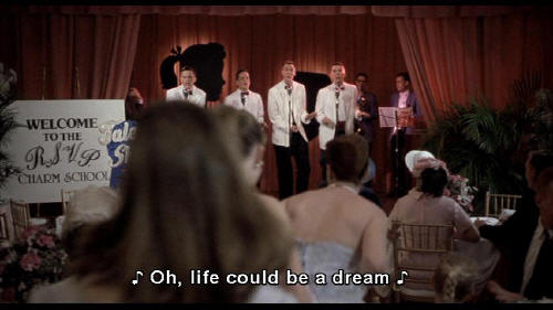 Oh, life could be a dream If I could take you up in paradise up above If you would tell me I'm the only one that you love [girls chattering] Life could be a dream sweetheart Hello hello again, sh-boom, and hopin' we'll meet again |