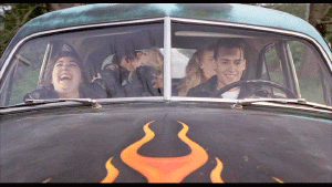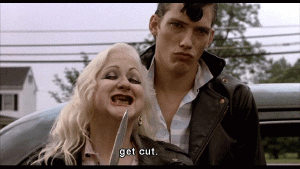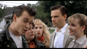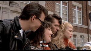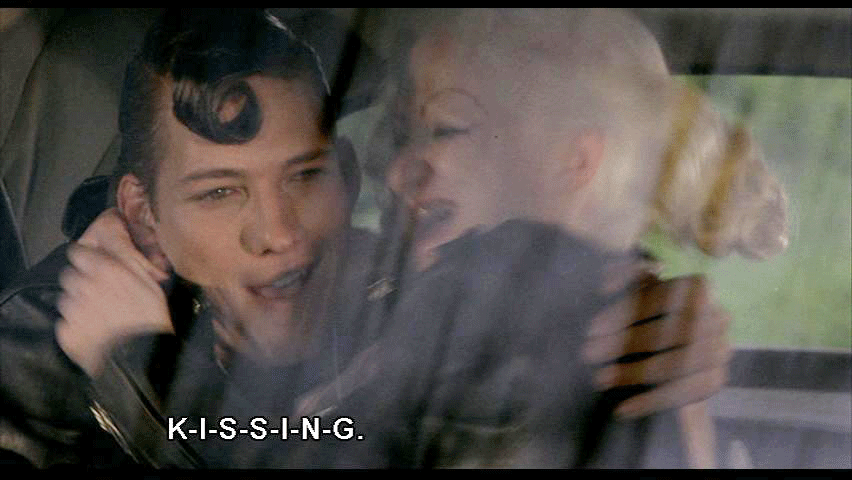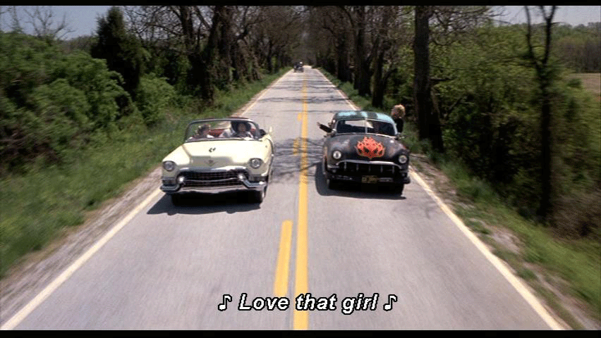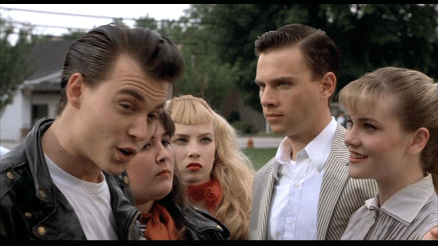 [PEPPER] I think Cry-Baby's got a girlfriend. [MILTON] Cry-Baby and Allison sitting in a tree [WADE] Shut up, Milton. [DRAPES] [laugh] [WANDA] Hey, Hatchet-Face, you think Cry-Baby's got blue balls for the chick? HATCHET-FACE: Allison's a Square, Wanda. Cry-Baby don't dig Squares. [PEPPER] No, she's a "Scrape." Part Square, part Drape. [WANDA] Cry-Baby, want some hooch? [WADE] I don't drink and drive. [tires screeching] [Song playing]
