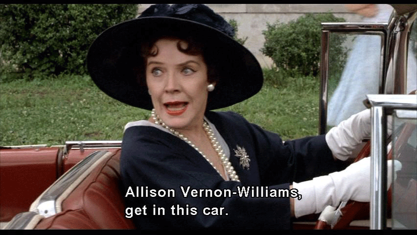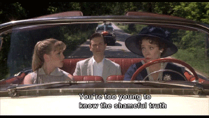 Mess around with me [MRS. VERNON WILLIAMS] You're too young to know the shameful truth [car horn honking] [Gee by The Crows playing] [Drapes