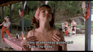 And if one of these creatures [ALL] Beauty, brains, [ALL] [applauding] [MRS. VERNON WILLIAMS] Yes! Yes! *** [TURKEY POINT SWIM CLUB] [MR. HACKETT] Teenagers everywhere repent! [TOE-JOE] Oh, take it easy, honey. I'm not getting any younger here, you know. You got it, what the hell, why not show it, right? [WANDA] Beat it, creep. [MRS. HACKETT] Here he comes now, with that devil woman. [HATCHET-FACE] Hi, Mrs. Hackett. [MR. HACKETT] Imagine our shame. [MILTON] Jeez, Mom and Dad, go home. *** [music playing] [LENORA] Hey! [MILTON] Looks like somebody lost their laundry. [LENORA] Hello, Cry-Baby. You scorch me, man. [WADE] Later, Lenora. [LENORA] But, Cry-Baby, I need a date for tonight's Jukebox Jamboree. [WADE] Well, I'm solo, sugar. [LENORA] Want to see these gunboats? I give, Cry-Baby. [WADE] Use your mentality and cool down. [WANDA] Well, Lenora, your bosoms ain't nothing. [HATCHET-FACE] Better watch it, bozo. You might catch a cold. [PEPPER] My brother wouldn't touch your titties with a 10-foot pole. ***