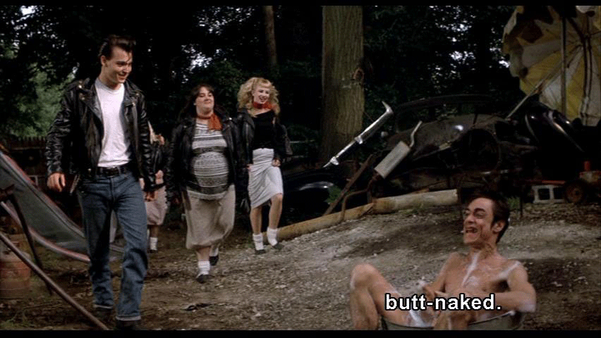 Now every time I look at you If you do what I want you to do Oh, life could be a dream Hello hello again, sh-boom and hopin' we'll meet again Life could be a dream sweetheart [ALL] [applauding] *** [WADE] Uncle Belvedere! [BELVEDERE] Wow! butt-naked. [PEPPER] Grandma, we're home! *** [DUPREE] How much? [RAMONA] That muffler? [DUPREE] Come on, Ramona. [RAMONA] You guys wanna do business with Ramona Rickettes Now, give me the bread and keep your trap shut. [DUPREE] You're a hard woman. [RAMONA] I'm going to see you in hell, Dupree. [laughing] Go on, get out of here. [KIDS] [chattering] [PEPPER] Have you been bothering your great-grandma all day? [BELVEDERE] Hell, no. They helped me steal a car. [SNARE-DRUM] It's a '51 Olds. [PEPPER] That's my little Snare-Drum. [SUSIE Q] And Ma, I swiped six hubcaps like a big girl. [PEPPER] Way to go, Susie-Q. [SNARE DRUM] Make those monster faces, Hatchet. Please. [HATCHET-FACE] [howling] [KIDS] [screaming] [RAMONA] Goddamn gopher's digging up my front yard. [DRAPES] [cheering] *** [BELVEDERE] Come on. Come on, everybody. Come on in. [DRAPES ] [whooping] [RAMONA] I'm just so proud of all my Drape children. [WANDA] I wish you and Belvedere were my parents. [RAMONA] Oh. You're young, stupid, and mean. [MILTON] We're gonna play some cool music for you tonight, Ramona. [RAMONA] And, Hatchet-Face. Oh, honey. You're just like me. But that's the way a woman's got to be these days. [HATCHET-FACE] I'd kick a Square's ass for you in a minute, Mrs. Rickettes. [RAMONA] Oh, this is the best gang my grandson could ever have. [PEPPER] Grandma, I'm so happy all knocked up [RAMONA] Well, we got a little surprise for your young one in your oven. [BELVEDERE] Sure will. [WADE] Oh, Pep, ain't that cute? [PEPPER] It's beautiful, Grandma. [RAMONA] Cry-Baby. [BELVEDERE] But I taught you how to dress, didn't I? [WADE] You sure did, Uncle Belvedere. [RAMONA] Yeah, well, you're the future now, boy. And I want you to go out there tonight and sing, boy. [DRAPES] [gasping] [WADE] Grandmother, Uncle Belvedere, you've made me the happiest juvenile delinquent in Baltimore. [motorcycle engine rumbling] [WADE] I met a girl! *** [A Teenage Prayer Playing] [ALLISON] [singing] My friends all know it How I adore him What I'd do for him He won't go steady To have him hold me I wait by the window at seven His kiss could send me to heaven Into his arms I would fly *** [My Heart Goes by Nappy Brown playing]