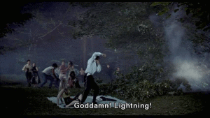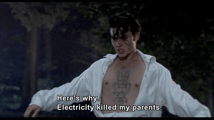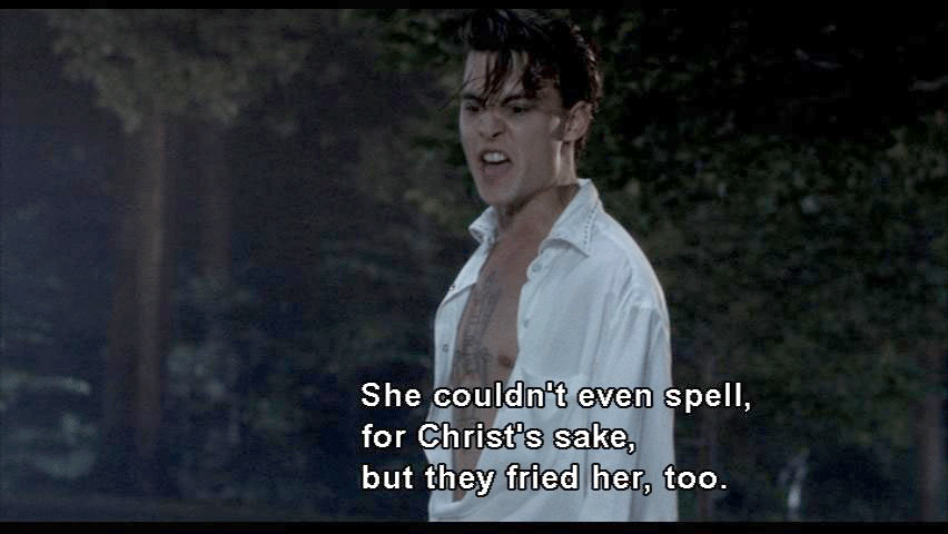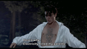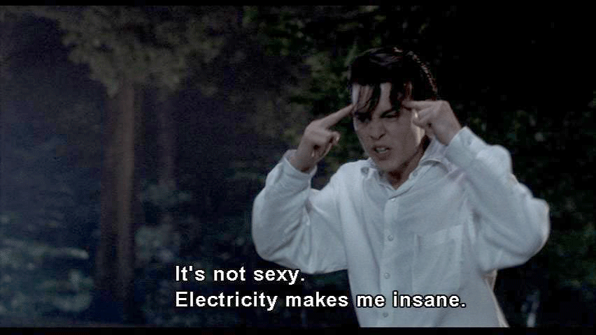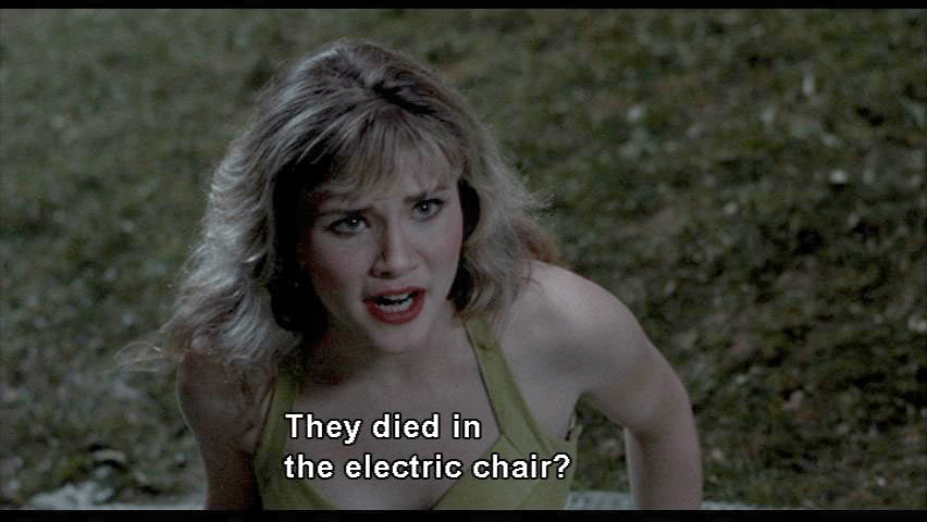 planes for safety, you know, [thunder cracking] [WADE] Goddamn! Lightning! [ALLISON] What's the matter, Cry-Baby? [WADE] Everything is the matter. [ALLISON] It's just a thunderstorm. Heat lightning. It's sexy. [WADE] It's not sexy. Electricity makes me insane. [ALLISON] Why, Cry-Baby? Why? [WADE] Here's why. Electricity killed my parents. [ALLISON] They died in the electric chair? [WADE] That's right, Allison. [ALLISON] God. I heard about the Alphabet