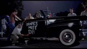 Cherry [WADE] Kiss me. Kiss me hard. [thunder clapping] [ALLISON] I've never given a French kiss before. [WADE] Watch. It's easy. and I open mine, And it feels real sexy. [ALLISON] I won't get mononucleosis, will I? [WADE] No, Allison. Just try it. *** [Song playing] I'll get you yet Someday, Cherry You'll be my pet Right now The day is set *** [DRAPES MUST DIE!] [I HATE DRAPES] [BOY] Break the window. [SQUARES] [laughing] *** [WADE] I'm sorry, Allison. [ALLISON] I want to let you, but I can't. For my parents' sake. [WADE] I'm sorry, Allison. I'm an orphan, too. [ALLISON] You are? [WADE] Yes. [ALLISON] Just on the outside of the shirt, okay? [WADE] Is it okay with you? [ALLISON] Yes. Oh, yes! Oh, my parents were, they were good people and they -- they loved me. [WADE] I want you. I need you. [ALLISON] They had to go on a business trip