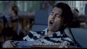 [ALLISON] [sniffing] Cry-Baby. *** [Teardrops are Falling Playing] [WADE]