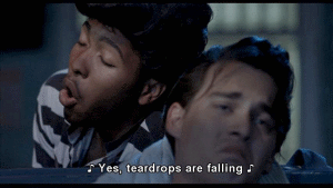 [singing] Teardrops are falling [ALL PRISONERS] [singing] Cry, go on, cry [WADE] [singing]