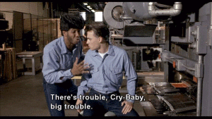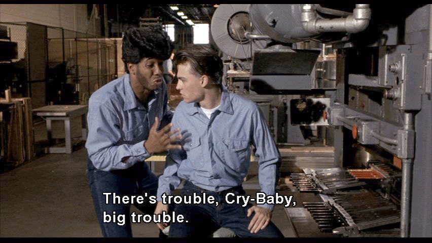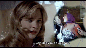 For you make me cry [DUPREE] [singing] Yes, teardrops are falling When you went away [WADE] [singing] My heart is aching And you make [ALL] [singing] Cry don't cry Cry don't cry [WADE] Oooh *** [ALLISON] [gulping tears] [panting] *** [band playing] [SQUARES] [chattering] [GANG WAR IN BALTIMORE] [MALE ANNOUNCER] Call these Drapettes bold, to fellow gang member and known hussy, Lenora Frigid, [LENORA] Cry-Baby is an orphan. [MALE ANNOUNCER] Wade Walker, defiantly entering the Maryland Training