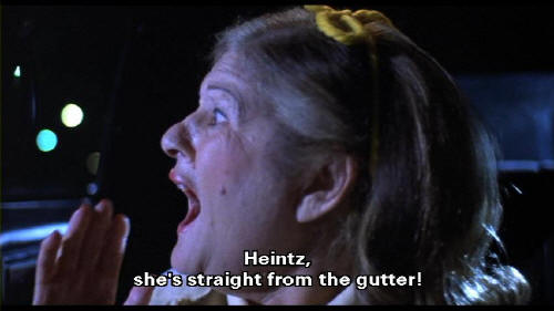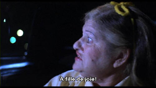 [Cuddles Kovinsky] Oh, Heintz, she's straight from the gutter! [Heintz] A sporting girl, I would imagine. [Cuddles Kovinsky] A fille de joie! [Heintz] It saddens me that you have to see anything this common, Madame. [Cuddles Kovinsky] Poor Francine! Poor, poor Francine! [TV Reporter] In other news, James Wemo ... accused of the August 9th bombing ... of the Maryland Censor Board Office ...