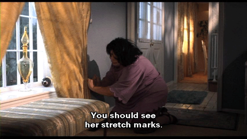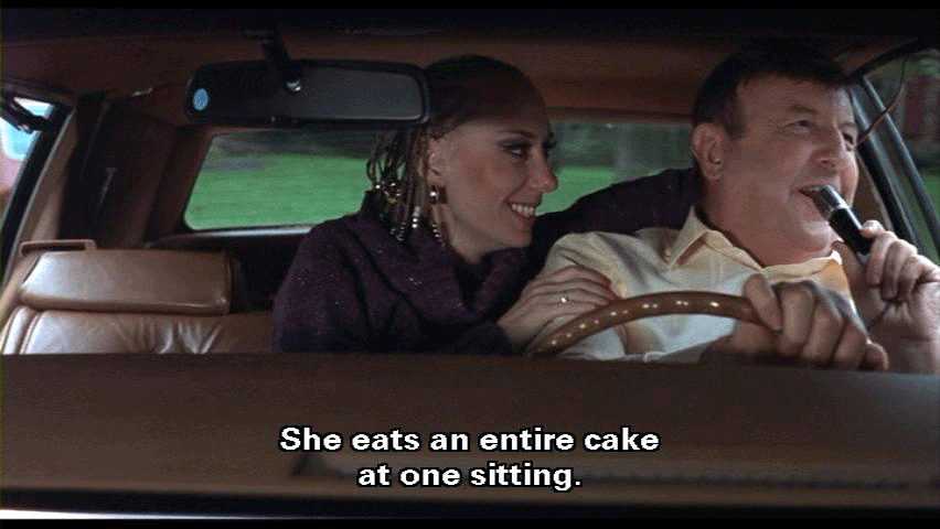 [Francine Fishpaw] [Sobbing] [Elmer Fishpaw] [On Loudspeaker] Francine Fishpaw lives at 538 Wyman Way. She weighs 300 pounds ... and is an alcoholic. Ha, ha, ha, ha, ha. She eats an entire cake at one sitting. You should see her stretch marks. Because of her drunkenness ...