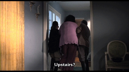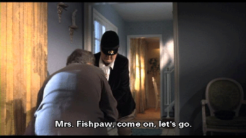 [Heintz] Mrs. Fishpaw, come on, let's go. This way, Mrs. Fishpaw. Upstairs. Let's go upstairs, Mrs. Fishpaw. [Francine Fishpaw] Upstairs? [Heintz] This way. Yes, ma'am.