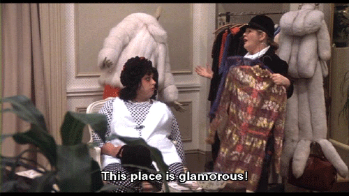 How au courant! I'm going to try this one on, too, and I'll be right back! Oh! This place is glamorous! [Francine Fishpaw] Hurry. I don't want to be late for my meeting. [Cuddles Kovinsky] God! Damn these designers!