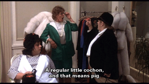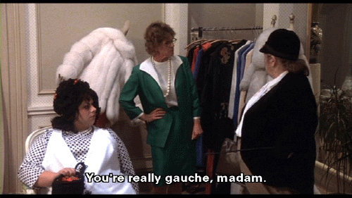 [Dexter Fishpaw] Ah, shoes ... [Boutique Saleslady] Madam, you will simply have to leave this store immediately ... or I will be forced to call the security guards. [Cuddles Kovinsky] You're really gauche, madam. A regular little cochon, and that means pig.