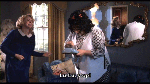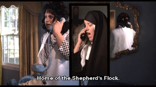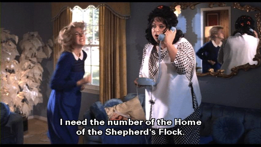 Yes, I need the number of the Home of the Shepherd's Flock Lu-Lu, stop it. Thank you. Lu-Lu, stop! [Nun 1] Home of the Shepherd's Flock. [Francine Fishpaw] Yes, this is Francine Fishpaw of 538 Wyman Way. I need an unwed mothers home.
