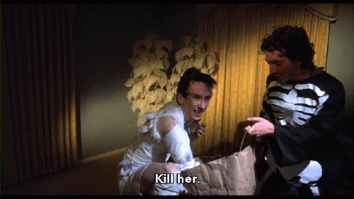 Kill her. [Bo-Bo Belsinger] Next time, you won't be so selfish ... and ignore little children on holidays! [La Rue] Maybe we have an apple or something. [Bo-Bo Belsinger] Too late now, Grandma. No candy means death!