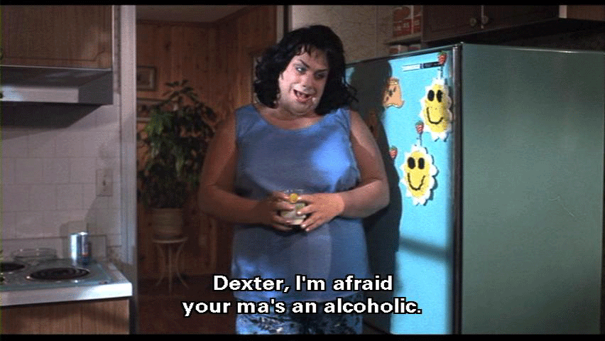 [Dexter Fishpaw] I sure missed your home cooking, Mom. [Francine Fishpaw] Oh, honey. There's no place like home, honey. [Dexter Fishpaw] Wow, everything looks just the same. [Francine Fishpaw] It's so good to have you back. [Dexter Fishpaw] Mom, are you still drinking? [Francine Fishpaw] Dexter, I'm afraid your ma's an alcoholic. [Dexter Fishpaw] Oh, Mom, you could stop. I got off the angel dust.