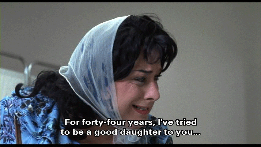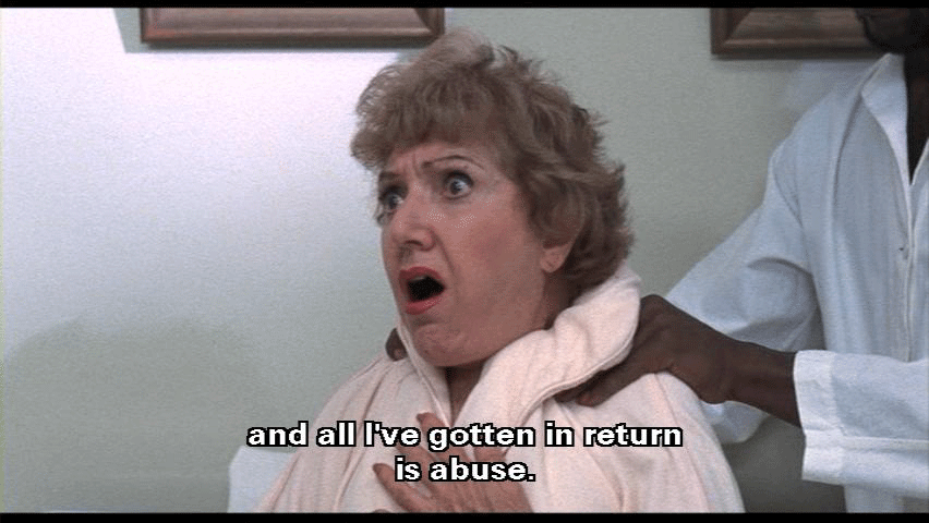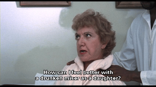 [Francine Fishpaw] Hello, Mother. Feeling any better today? [La Rue] How can I feel better with a drunken miser as a daughter? [Francine Fishpaw] Shut up, Mother! For forty-four years, I've tried to be a good daughter to you ... and all I've gotten in return is abuse.