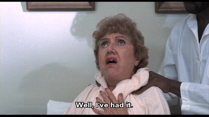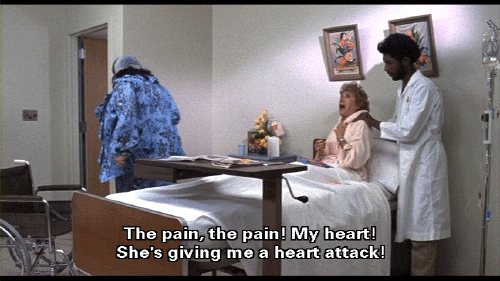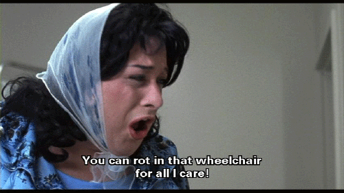 I've given you money -- thousands and thousands of dollars -- and still it's not enough! Well, I've had it. You can rot in that wheelchair for all I care! [La Rue] The pain, the pain! My heart! She's giving me a heart attack! Oh, God, help! Help!