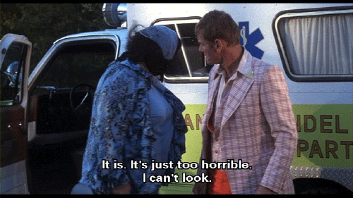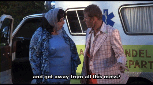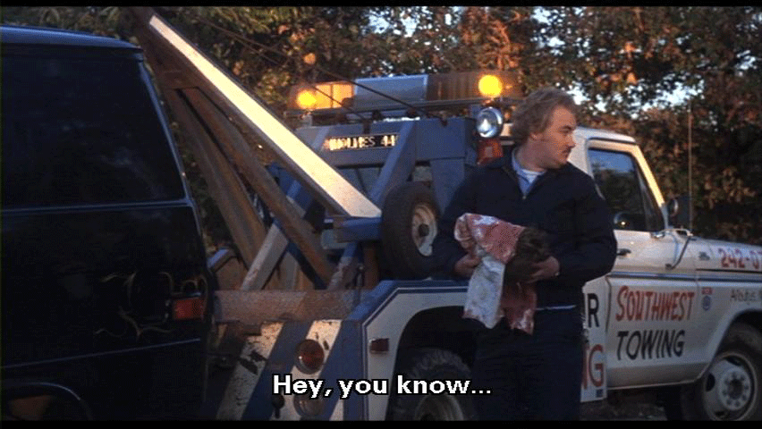 [Two Truck Driver] Excuse me. [Todd Tomorrow] It was really horrible. [Francine Fishpaw] It is. It's just too horrible. I can't look. [Todd Tomorrow] Hey, you know ... why don't we take a ride in the country ... and get away from all this mess? I mean, it's a beautiful day, and I find you quite attractive. [Francine Fishpaw] But I don't even know your name.