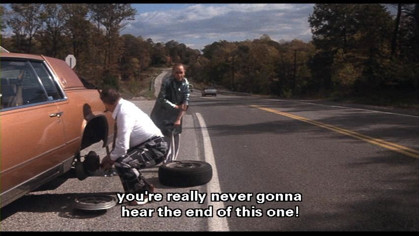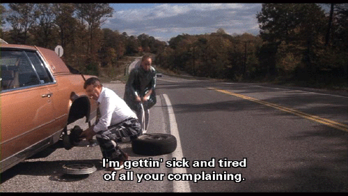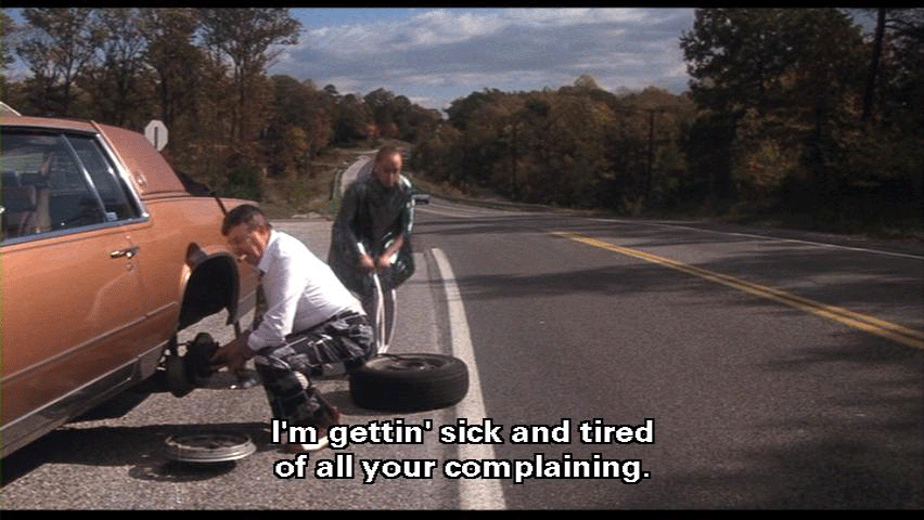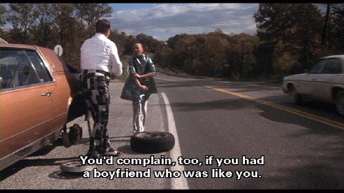 [Sandra Sullivan] If I break a nail ... you're really never gonna hear the end of this one! [Elmer Fishpaw] Listen, I'm gettin' sick and tired of all your complaining. All you know is complain, complain, complain. [Sandra Sullivan] Well, you'd complain, too, if you had a boyfriend who was like you. Why don't you get a decent car?
