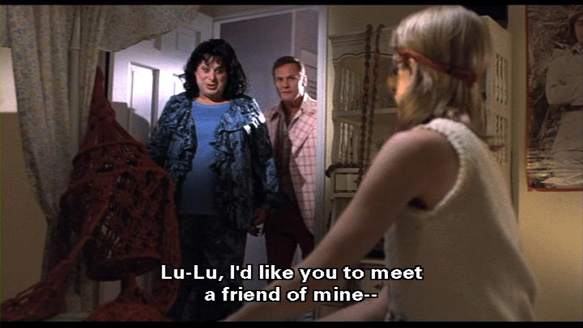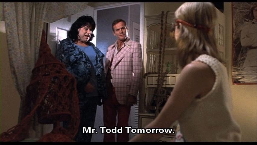 [Todd Tomorrow] I can hardly wait. [Francine Fishpaw] Oh, OK. Follow me. [Todd Tomorrow] Stunning. [Lu-Lu Fishpaw] Hi, Mom. [Francine Fishpaw] Lu-Lu, I'd like you to meet a friend of mine -- Mr. Todd Tomorrow.