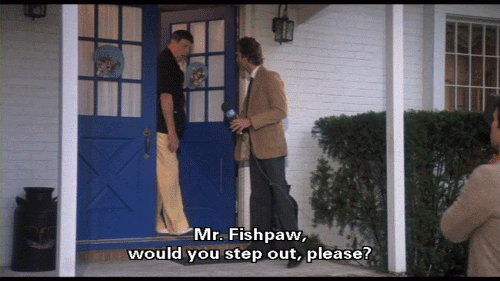 which we are about to receive from Thy bounty ... through Christ our Lord. Amen. [Doorbell rings] [Francine Fishpaw] Don't answer it! [Lu-Lu Fishpaw] It's a TV crew! [Elmer Fishpaw] I'll handle that. You all stay here. [Jerry Haller, Channel 12 News] Mr. Fishpaw, would you step out, please? [Elmer Fishpaw] Why, certainly.