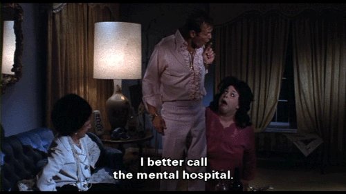 [Francine Fishpaw] [Making Ape Sounds] [Todd Tomorrow] I better call the mental hospital. [La Rue] Shut up. [Todd Tomorrow] Right. [La Rue] Stop faking it! [Todd Tomorrow] Happy Hills? This is 538 Wyman Way. Yeah, you'd better send some attendants over here right away. We got this thing, this big thing ... this woman's had a breakdown.