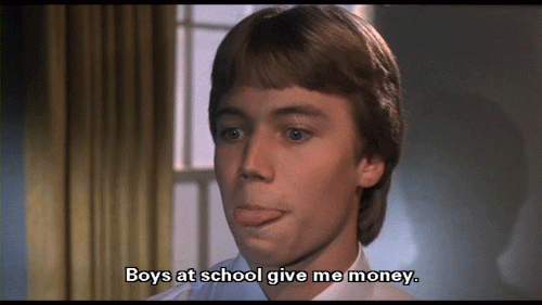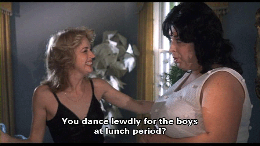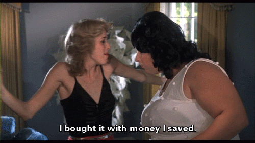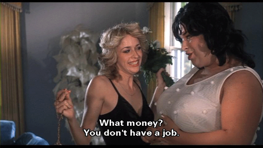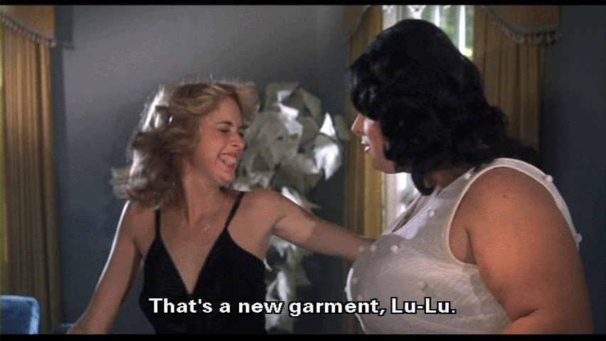 [Francine Fishpaw] That's a new garment, Lu-Lu. I can smell it. Have you been shoplifting again? [Lu-Lu Fishpaw] I bought it with money I saved. [Francine Fishpaw] What money? You don't have a job. [Lu-Lu Fishpaw] Boys at school give me money. [Francine Fishpaw] For what? [Lu-Lu Fishpaw] For dancing at lunch period! [Francine Fishpaw] You dance lewdly for the boys at lunch period?