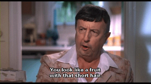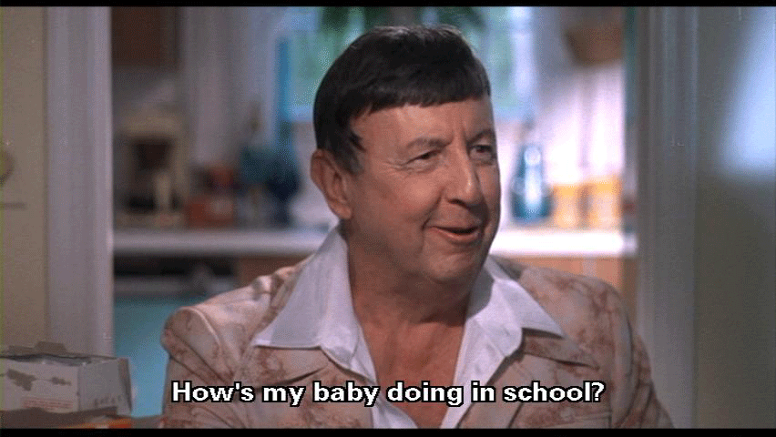 Why don't you let that hair grow, boy? You look like a fruit with that short hair. [Derek Fishpaw] Why don't you drop dead? [Elmer Fishpaw] You're just asking for it. How's my baby doing in school?