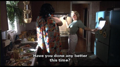 Lu-Lu! I'm trying to clean in here! [Lu-Lu Fishpaw] I got my report card today. Want to see it? [Francine Fishpaw] Have you done any better this time? F, F, F, F, F, F, F, F [Francine Fishpaw] Lu-Lu, you have failed every single subject again! [Lu-Lu Fishpaw] No, Ma. They changed the grading system. "F" is for "Fantastic." [Francine Fishpaw] You little liar.