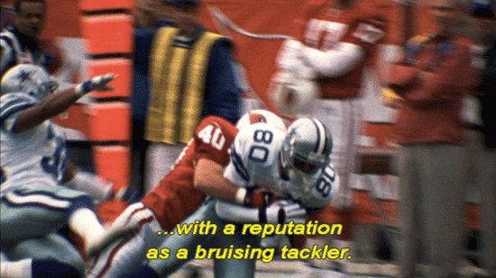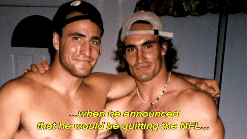 with a reputation as a bruising tackler. But he brushed it all aside ... ... when he announced that he would be quitting the NFL ... ... joining the Army Rangers along with his brother Kevin ... ... and setting off to fight in the Middle East. |