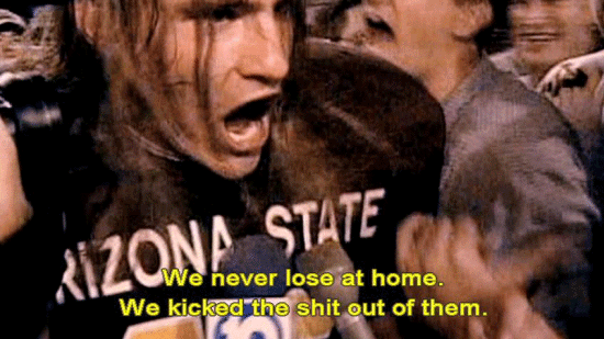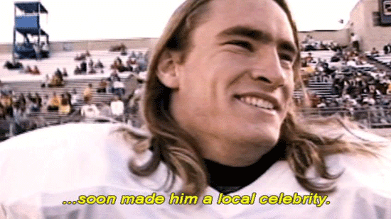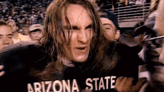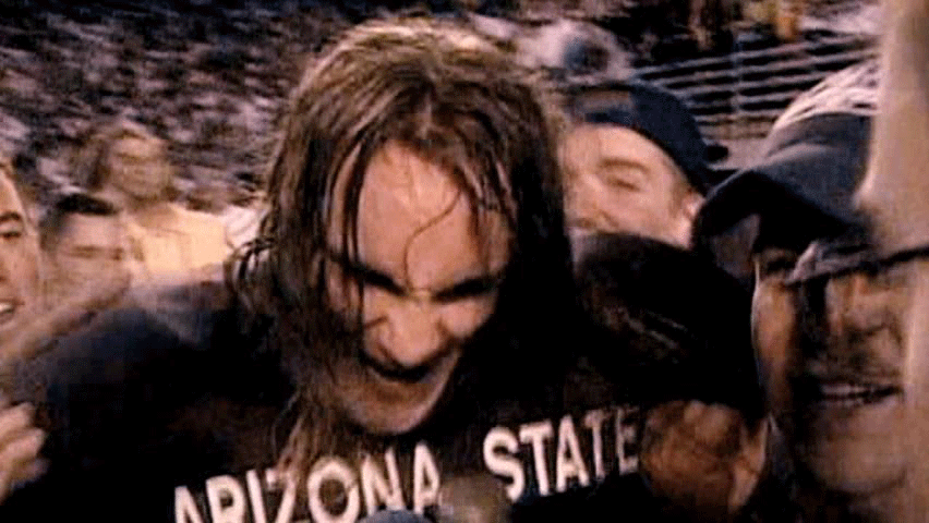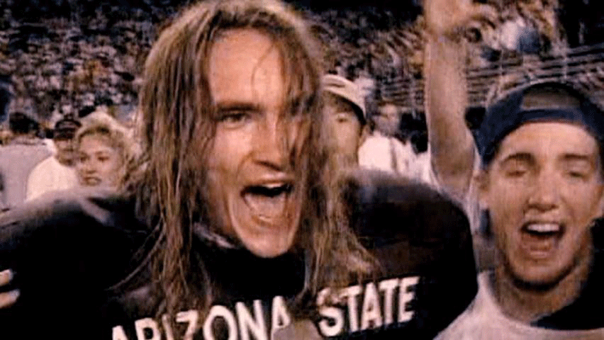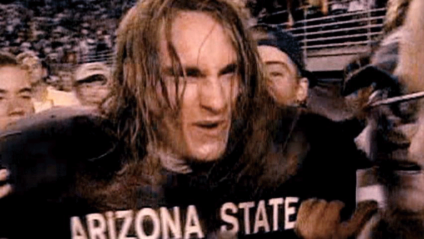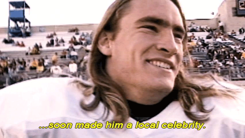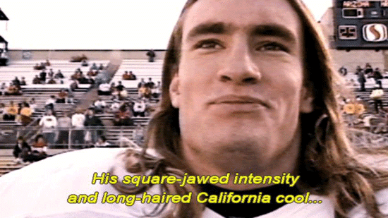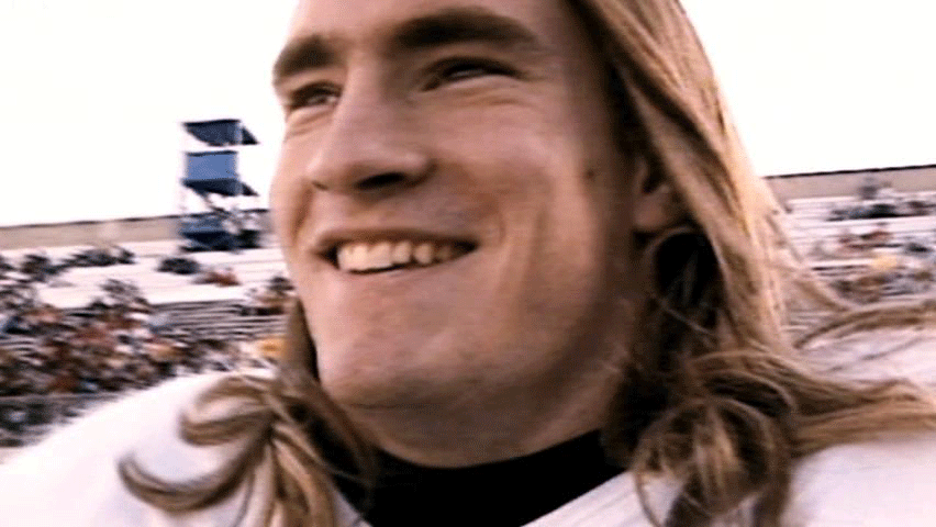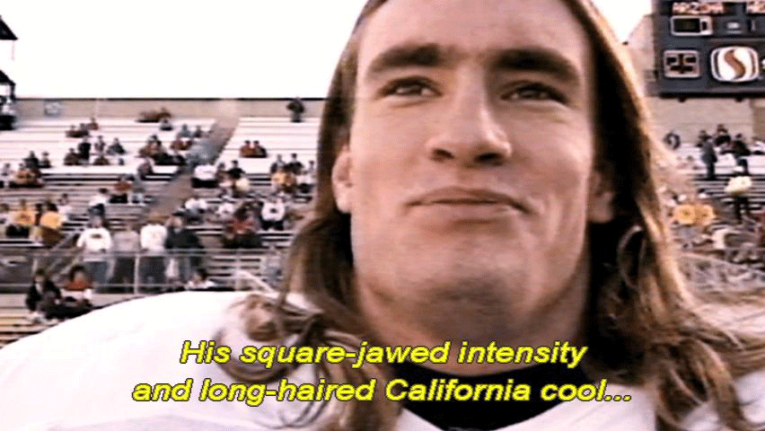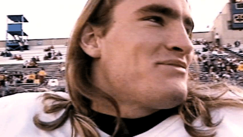 [Pat Tillman] We never lose at home. We kicked the shit out of them. [Narrator] His square-jawed intensity and long-haired California cool ... ... soon made him a local celebrity. |