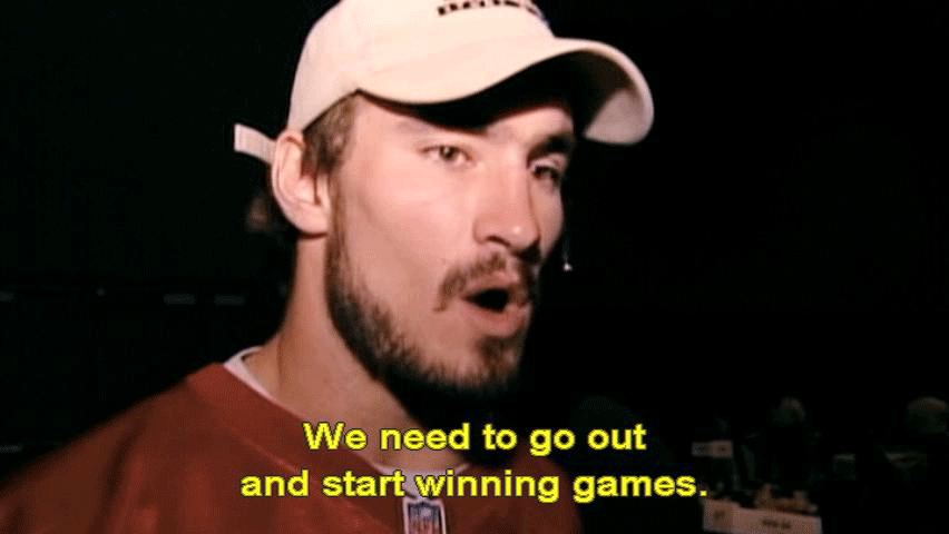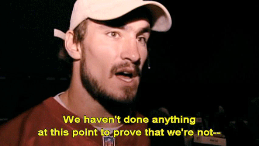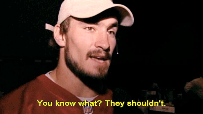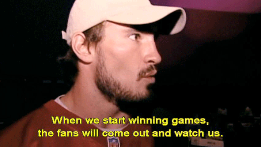 [Pat Tillman] You know what? They shouldn't. We haven't done anything at this point to prove that we're not -- We didn't have a good year last year, and that's the only thing that matters. We need to go out and start winning games. When we start winning games, the fans will come out and watch us. Until that happens, you know, I wouldn't come out either. [Sportscaster] The Cardinals win and they go to the playoffs. |