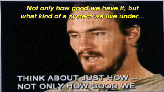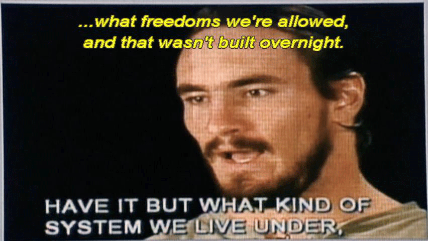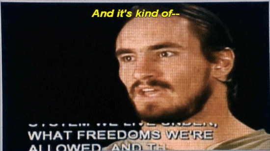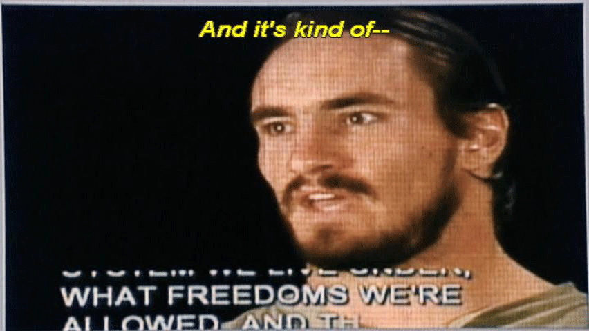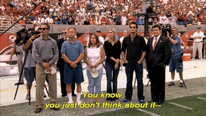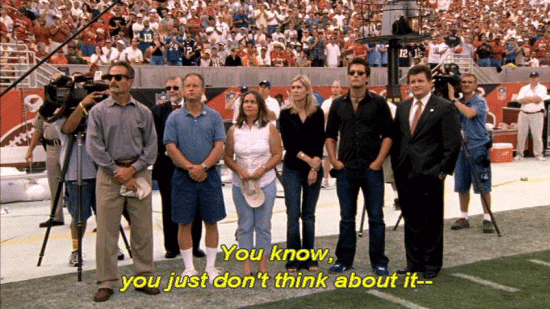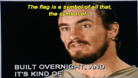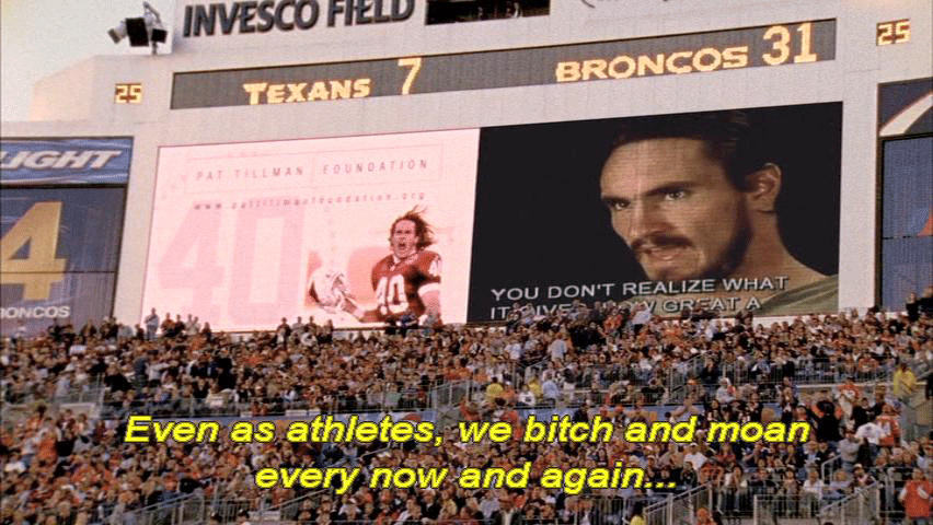 [Pat Tillman] Even as athletes, we bitch and moan every now and again ... ... about this or that, and if we ever just, you know -- Times like this, you stop and think about just how -- Not only how good we have it, but what kind of a system we live under ... ... what freedoms we're allowed, and that wasn't built overnight. And it's kind of -- The flag is a symbol of all that, the symbol of -- You know, you just don't think about it -- |