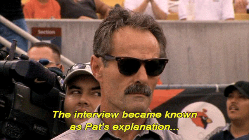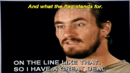 So I have a great deal of respect for those that have. And what the flag stands for. [Narrator] The interview became known as Pat's explanation ... ... for why he dropped everything and joined the Army ... ... even though he wouldn't actually make his decision ... ... for another six months. |