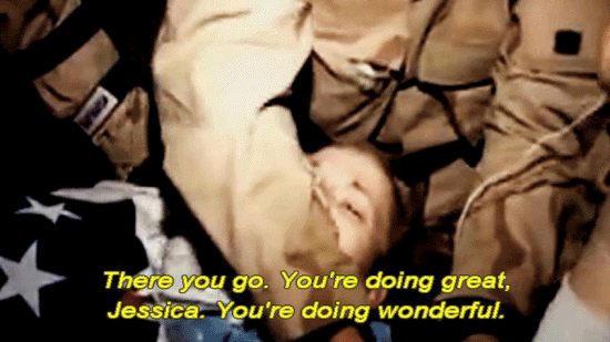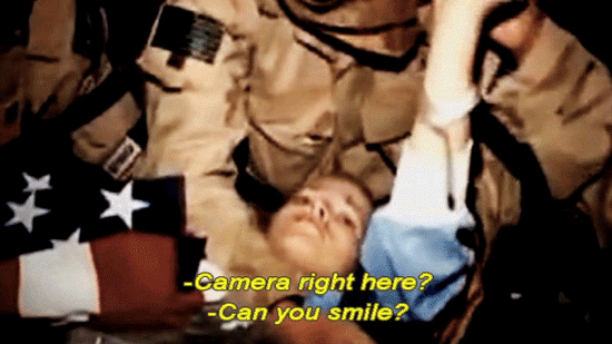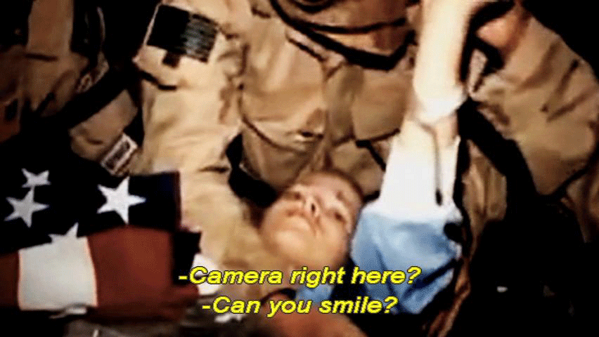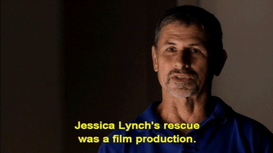 ... had been to enable a combat camera crew to record the mission. [Photographer 1] Camera right here? [Photographer 2] Can you smile? Can you smile for the family? [Photographer 3] For your folks? [Photographer 4] There you go. You're doing great, Jessica. You're doing wonderful. [Stan Goff, Retired soldier] It was a film production. Jessica Lynch's rescue was a film production. [Official] We understand that there is video taken by a combat camera team. Can you show us that video? [Army Man] Do we have the tape? |