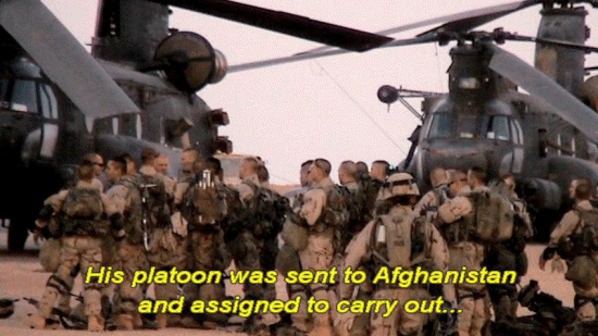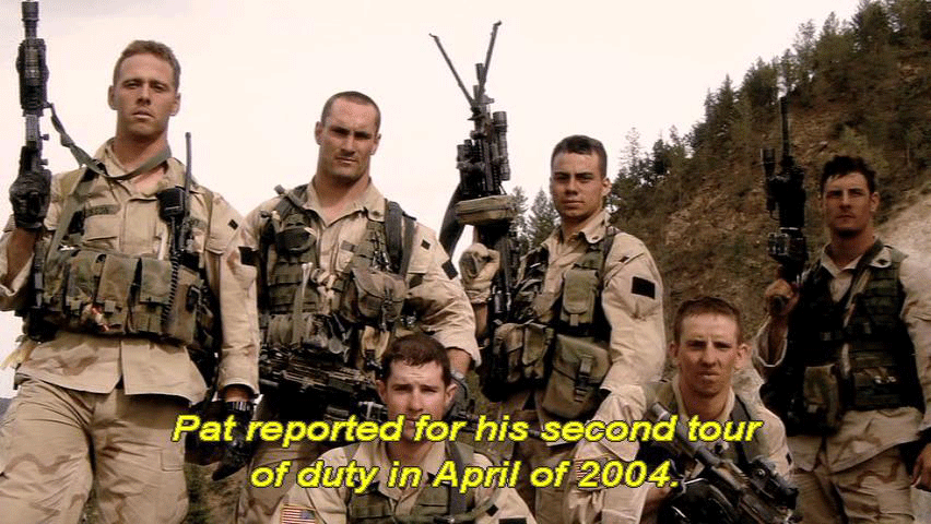 And then -- And his last -- He said, "Coach, I just -- You know I wanna come back and play for you." [Narrator] Pat reported for his second tour of duty in April of 2004. His platoon was sent to Afghanistan and assigned to carry out ... ... reconnaissance sweeps near the Pakistani border. |