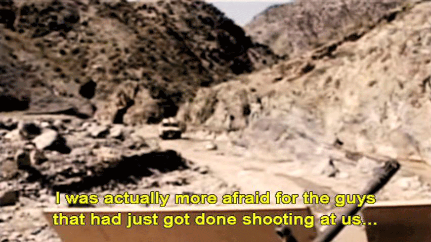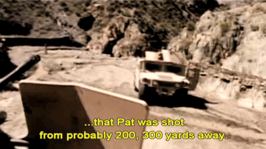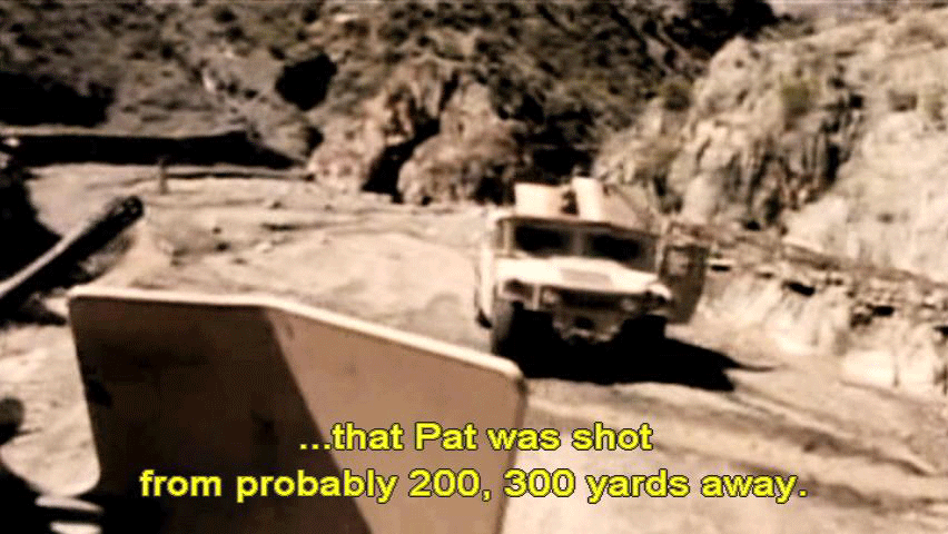 I was actually more afraid for the guys that had just got done shooting at us ... ... that they were gonna get in trouble. [Narrator] The soldiers didn't get in trouble ... ... because the military always maintained ... ... that what happened next transpired in only four seconds ... ... during the confusion of combat. [Patrick Tillman Sr., Pat's father] For years, we get this story ... ... that Pat was shot from probably 200, 300 yards away. |